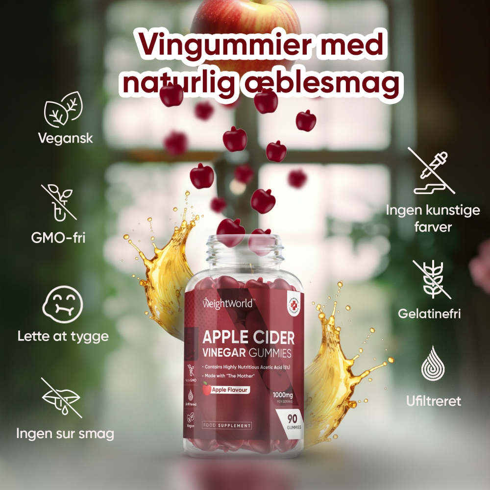 Æblecidereddike-vingummier er en praktisk og velsmagende måde at nyde godt af fordelene ved æblecidereddike, helt uden den stærke smag og syre, som flydende æblecidereddike har.