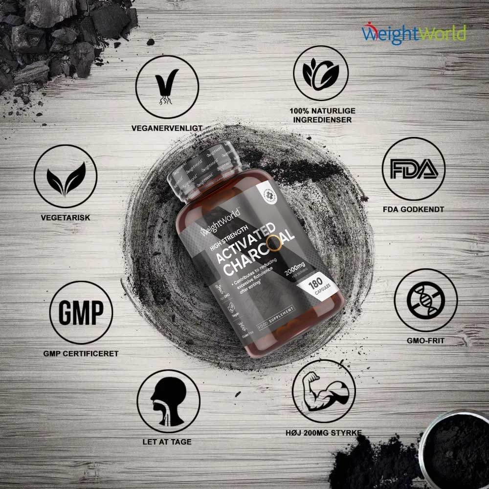 - Aktivt kul-kapsler til fordøjelsen