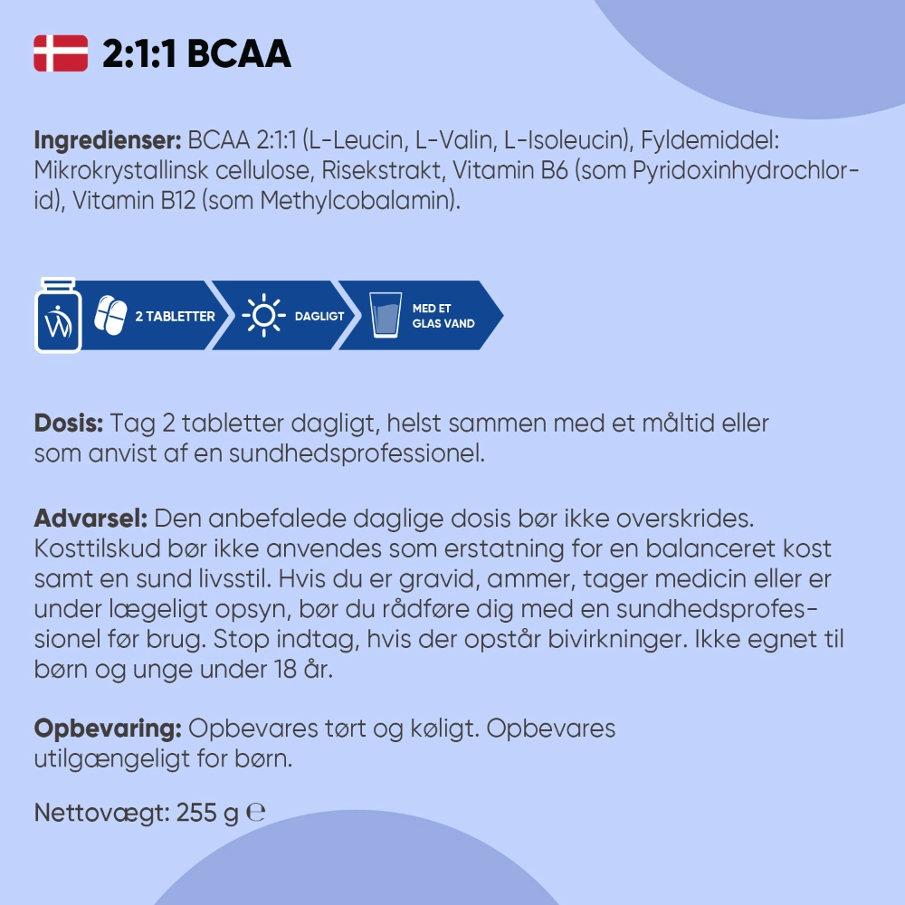 - Høj dagsdosis - hele 2000mg BCAA