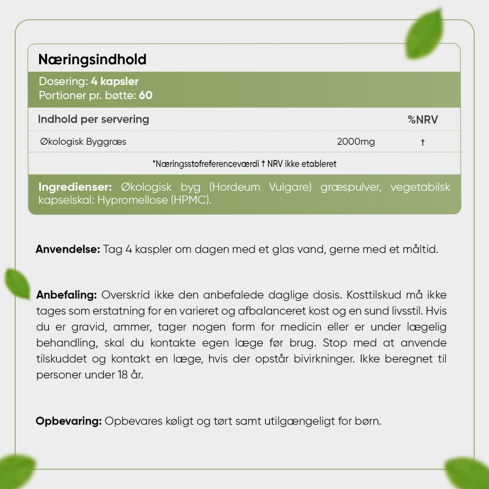 - Byggræs-kapsler med høj dagsdosis - 2000 mg