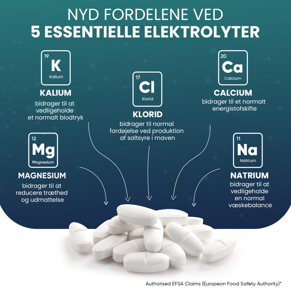 - Elektrolytter med calcium, chlorid, magnesium, natrium og kalium