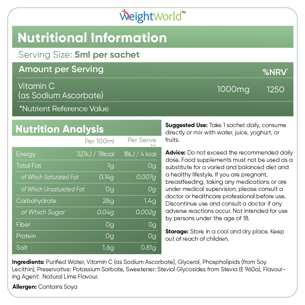 - 14 poser af 5ml flydende C-vitamin - nok til 14 dage