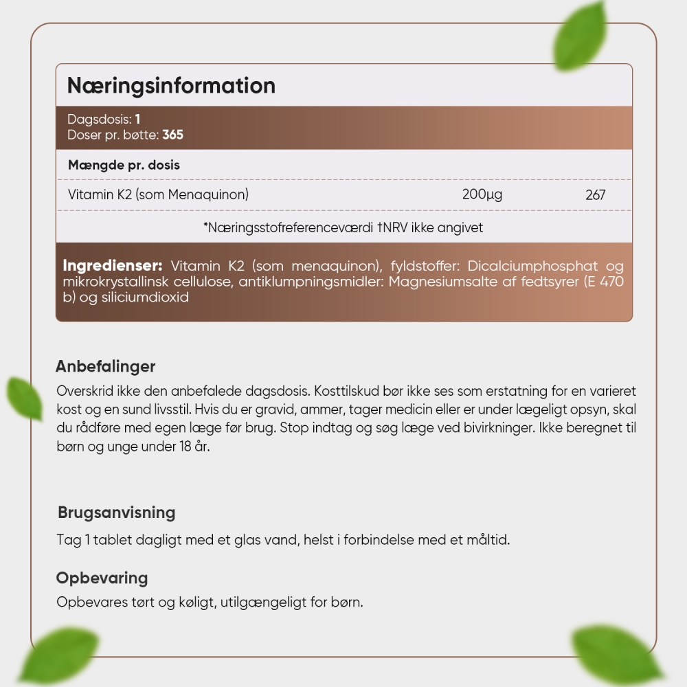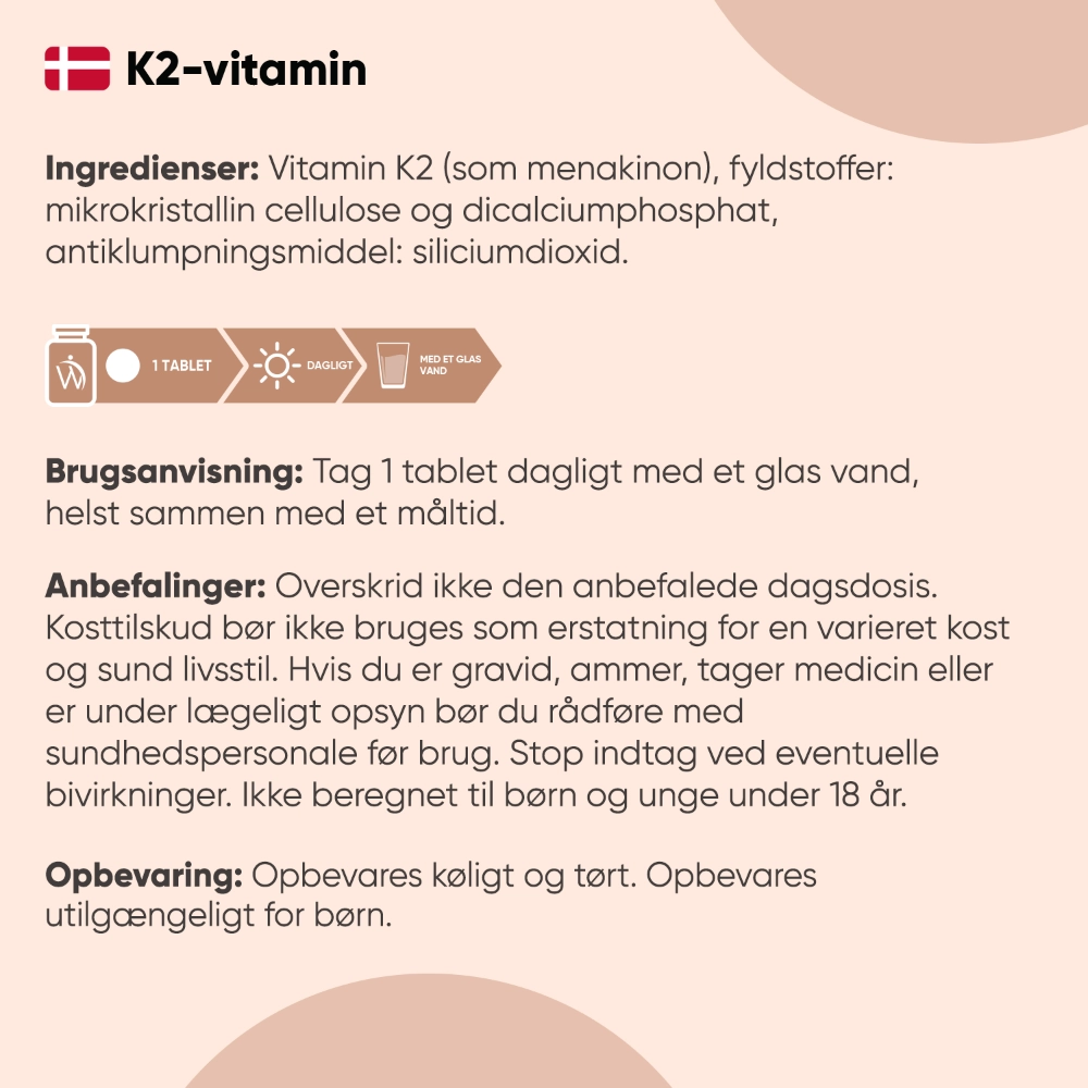 - K2-vitamin tabletter - høj dagsdosis på 200 mikrogram
