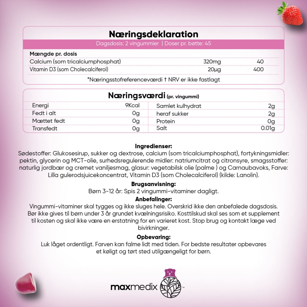 - Kalk og D3-vitamin vingummier til børn i alderen 3-12 år