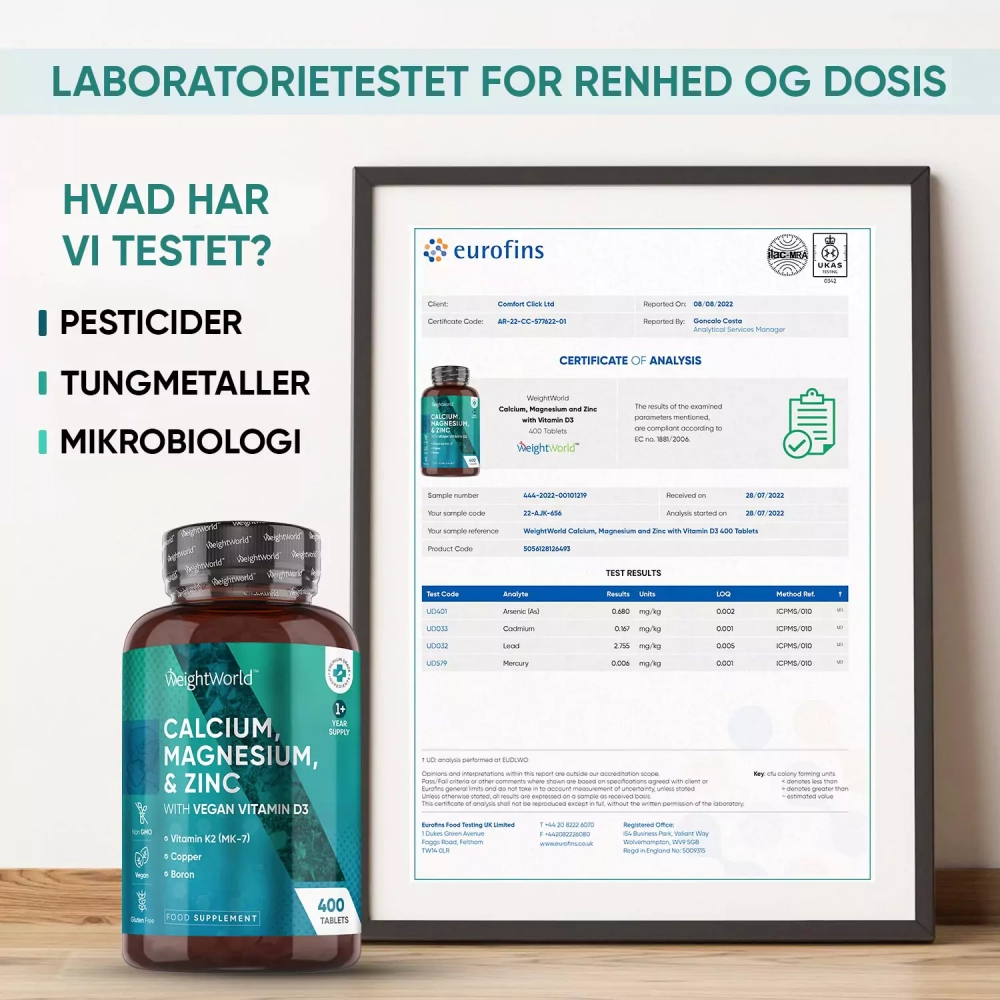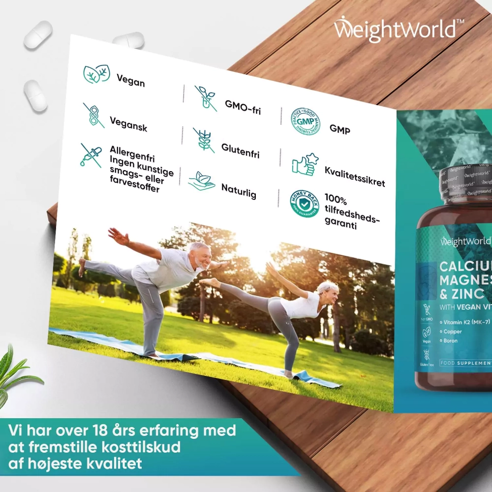 - Kalktabletter (calcium) med magnesium, zink og D-vitamin
