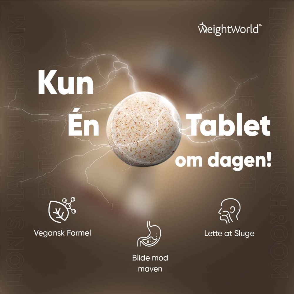- Lions mane-tabletter med høj dosis på 2000 mg
