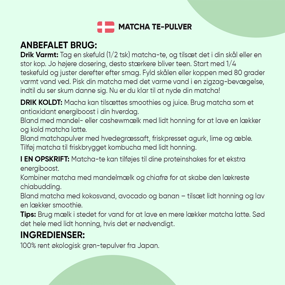 - Velegnet til matcha latte, smoothies og bagværk