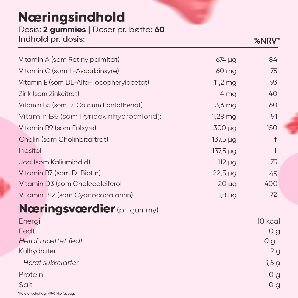 - Spis 2 multivitamin-vingummier dagligt – nok til 2 måneder