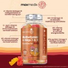 Disse multivitamin-gummies indeholder vitaminer specifikt udvalgt til at bidrage til dine børns velvære, så de på en nem og velsmagende måde kan få en daglig dosis vitaminer og mineraler. Vores vitamin-vingummier indeholder 17 essentielle vitaminer, og fedtsyrer mineraler, der alle er særligt udvalgt med fokus på børns vækst og velvære.
