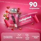 Vingummi-multivitaminerne til kvinder har ikke kun en naturlig og lækker hindbær- og jordbærsmag, de hjælper dig også med at få en daglig dosis næringsstoffer hver dag.
