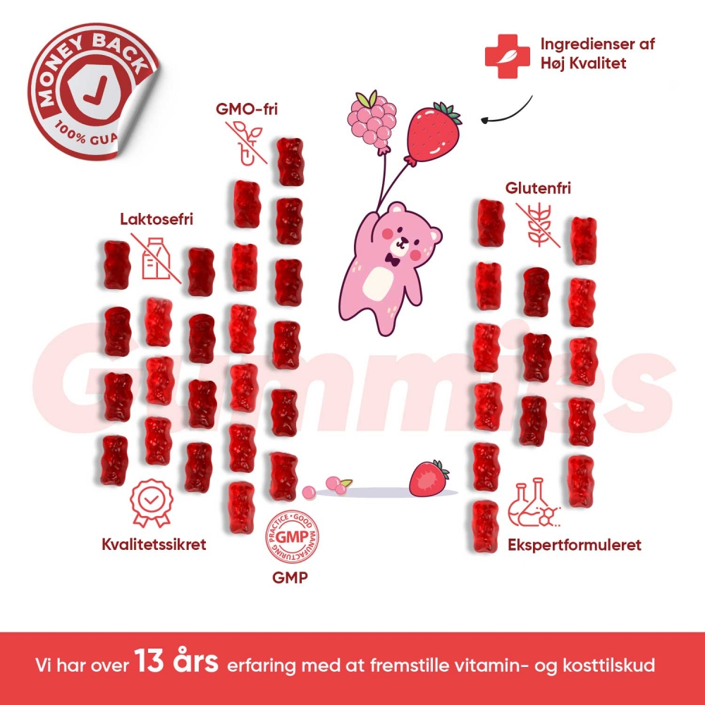 - Spis 2 vingummier dagligt - nok til 2 måneder