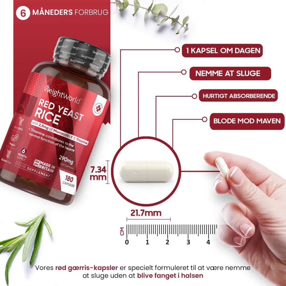 - Rød Gærris-tilskud med 2,9 mg monacolin K