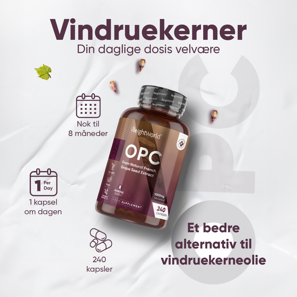 - 1000 mg fransk vindruekerneekstrakt-tilskud