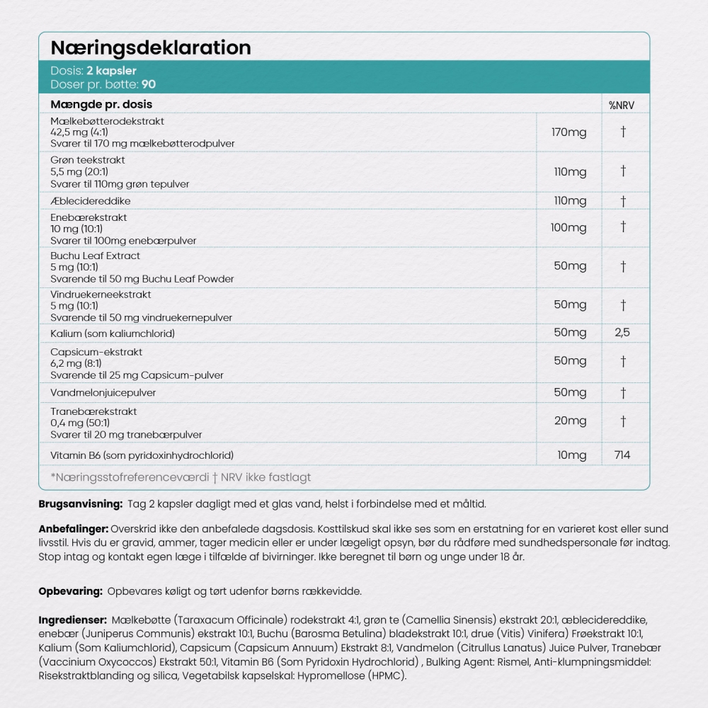 180 kapsler | Naturligt vanddrivende kosttilskud