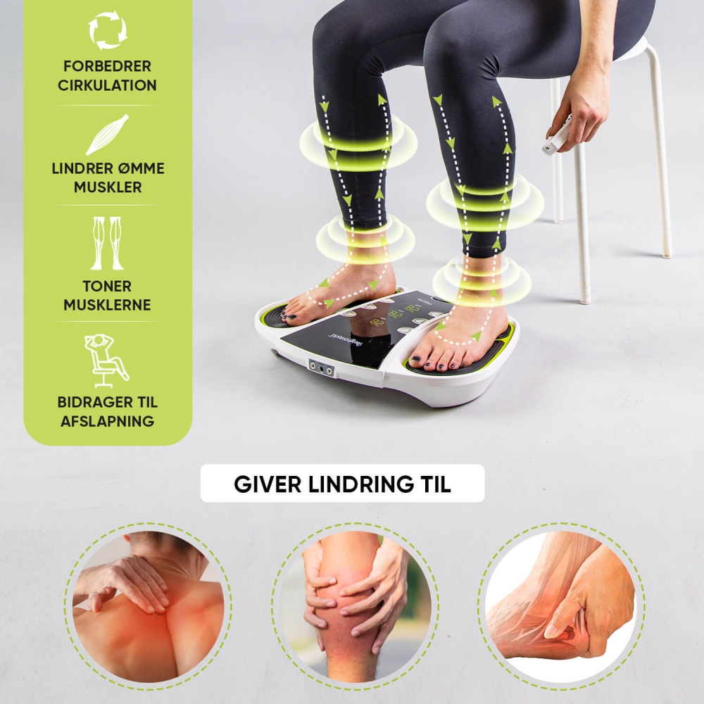For at få det optimale ud af cirkulationstræneren anbefaler vi, at du bruger træningsmaskinen barfodet. Med det sagt kan du godt få glæde af vibrationerne, selvom du har strømper på.